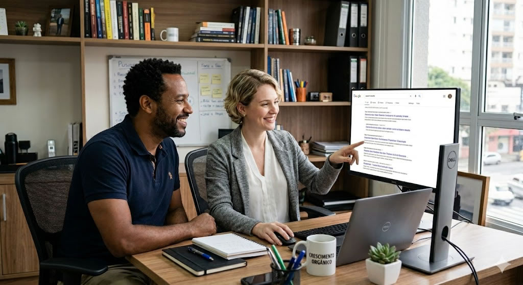 - Autoridade Inquestionável: Quem aparece nos resultados naturais é visto como referência, não como alguém que apenas “comprou” aquele espaço.